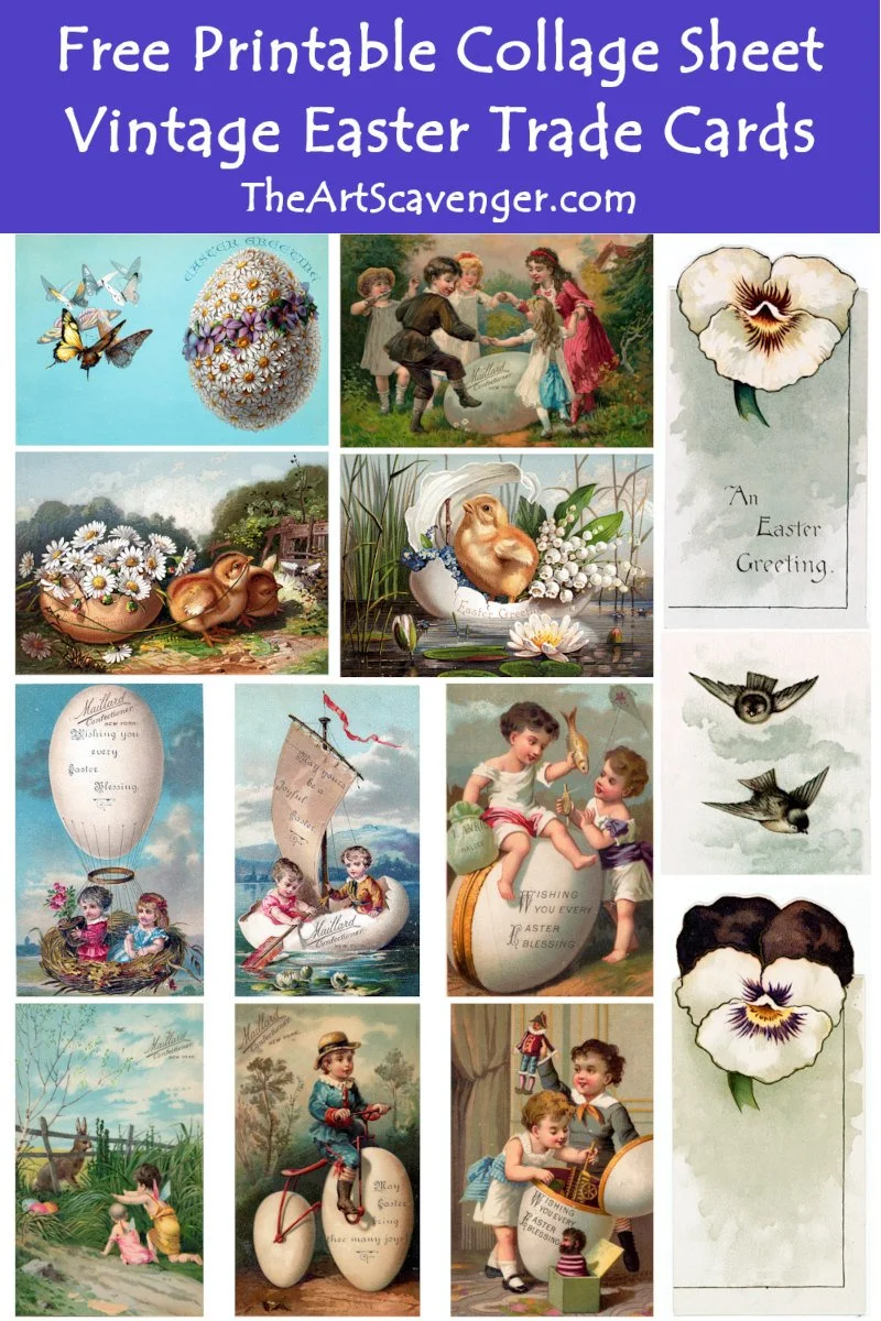 As with the other Easter Trade Cards I posted, This printable collage sheet is made up of trade card images from the late 1800s. Some of these have the name of a confectioner printed on them which conjured images of cases full of hand-made chocolates and sweet treats in my head.
