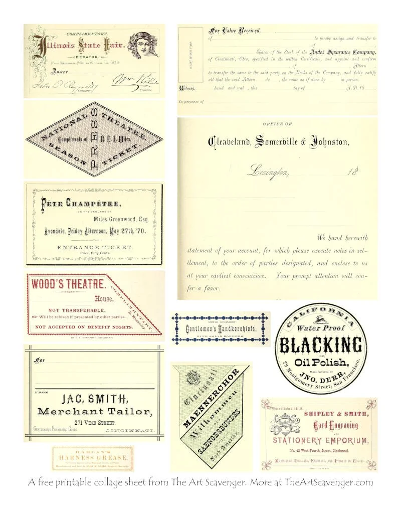 Free Printable Vintage Ephemera – Tickets, Labels & Certificate Collage Sheet for Junk Journals